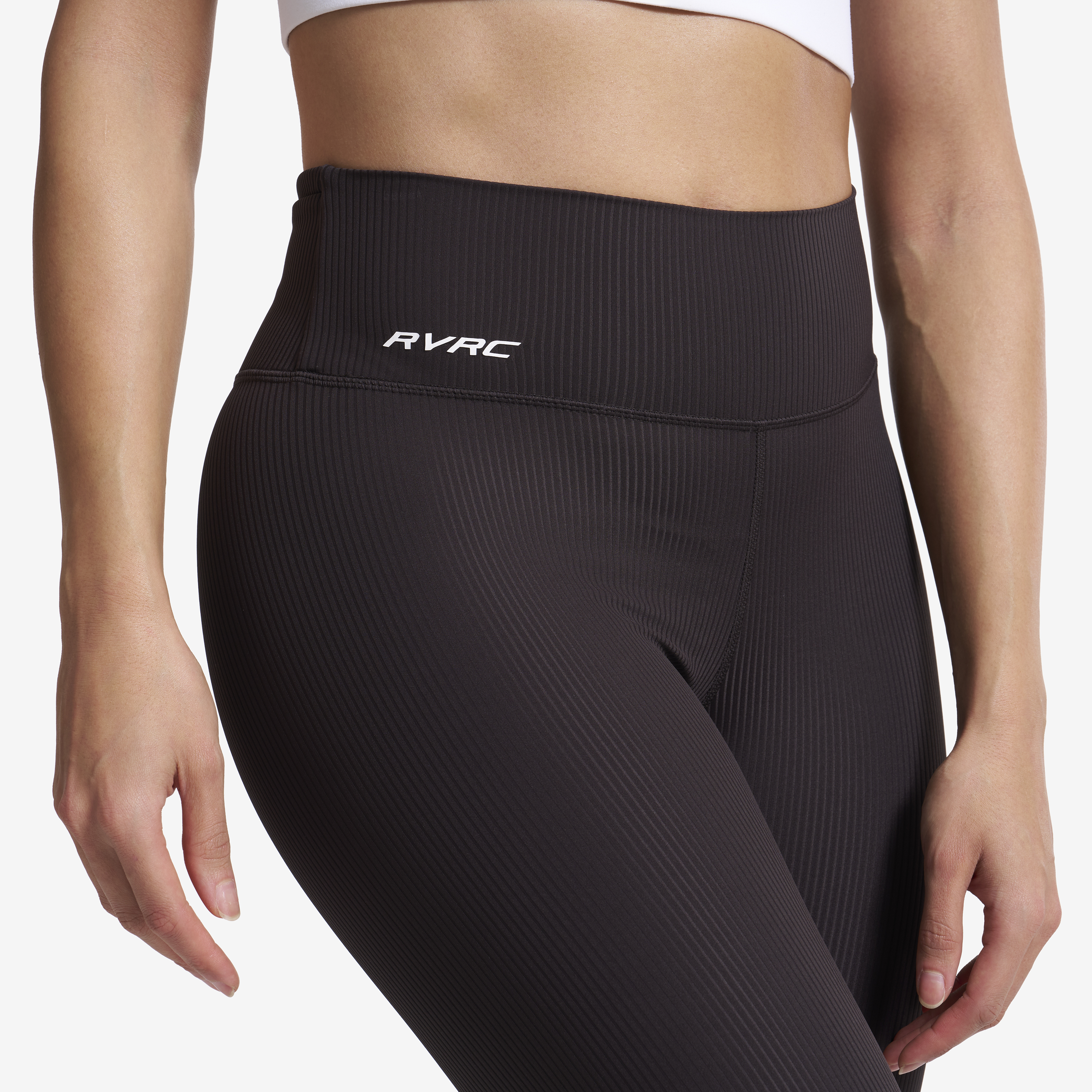 Cienkie lekko prążkowane legginsy z wysokim stanem z rozszerzanymi nogawkami.