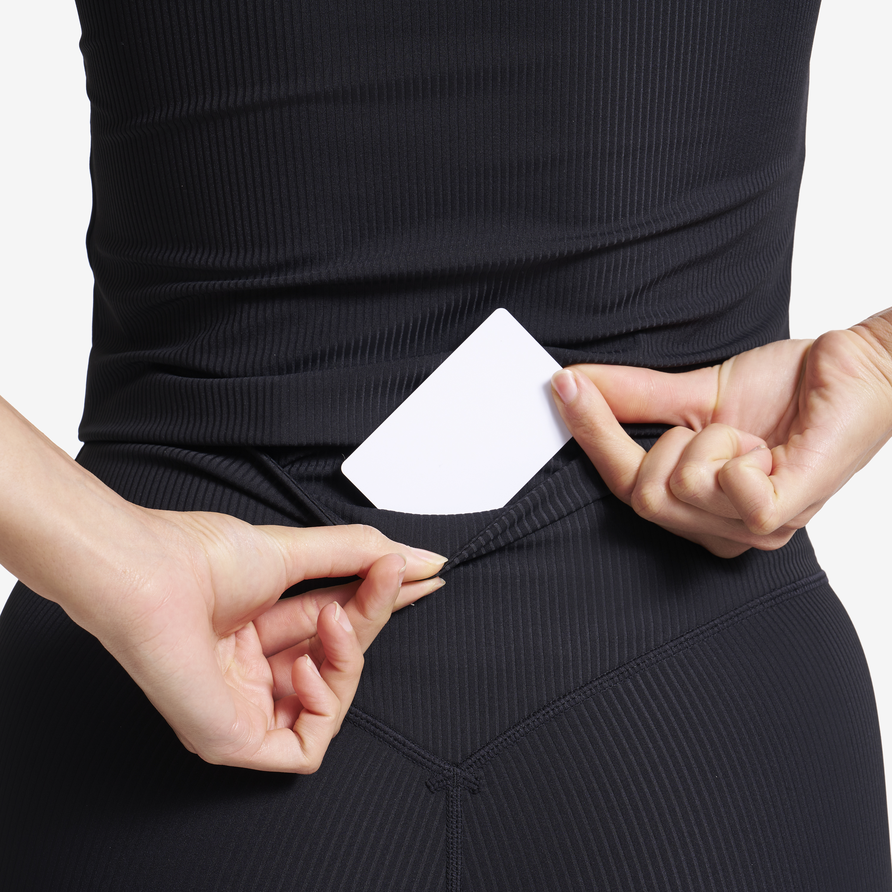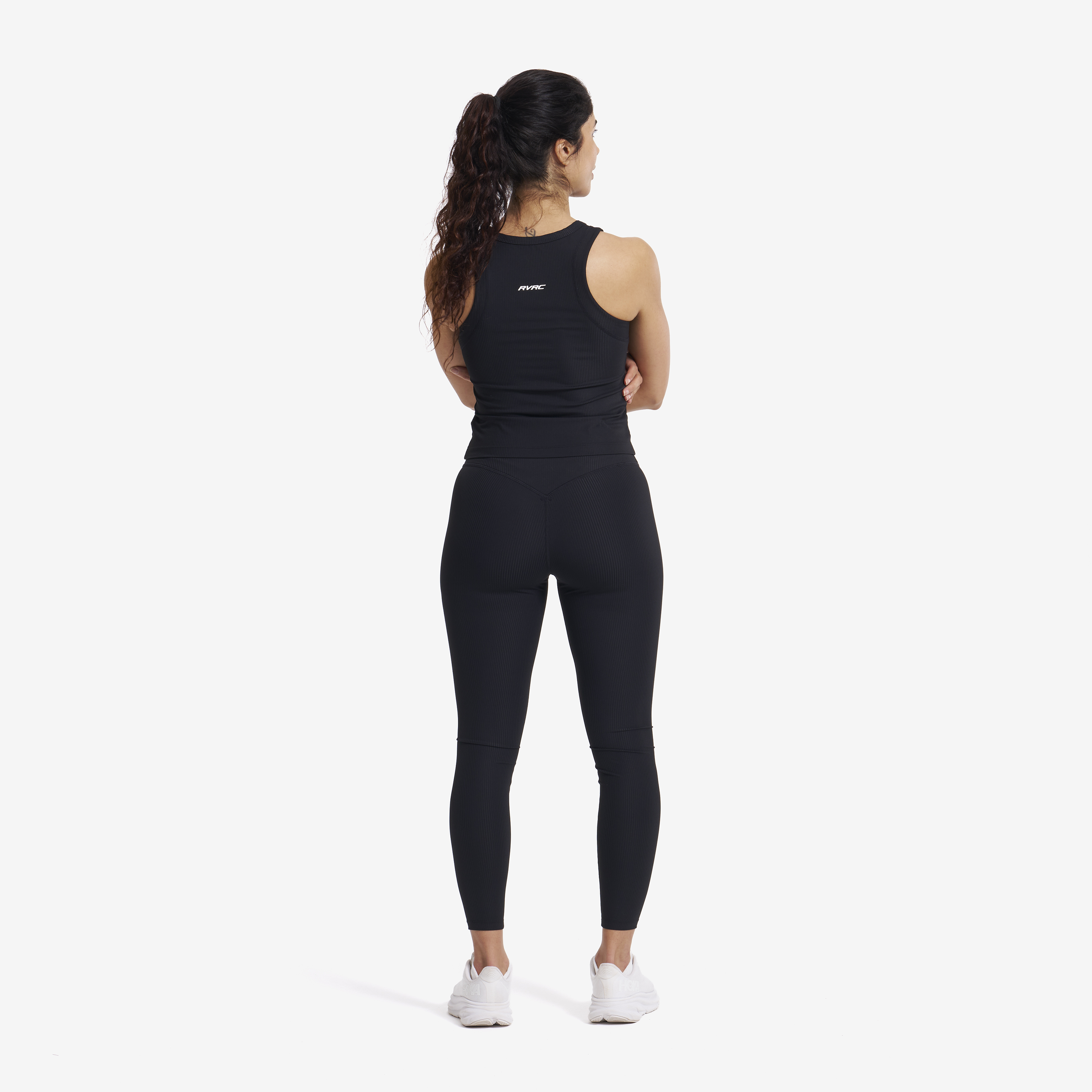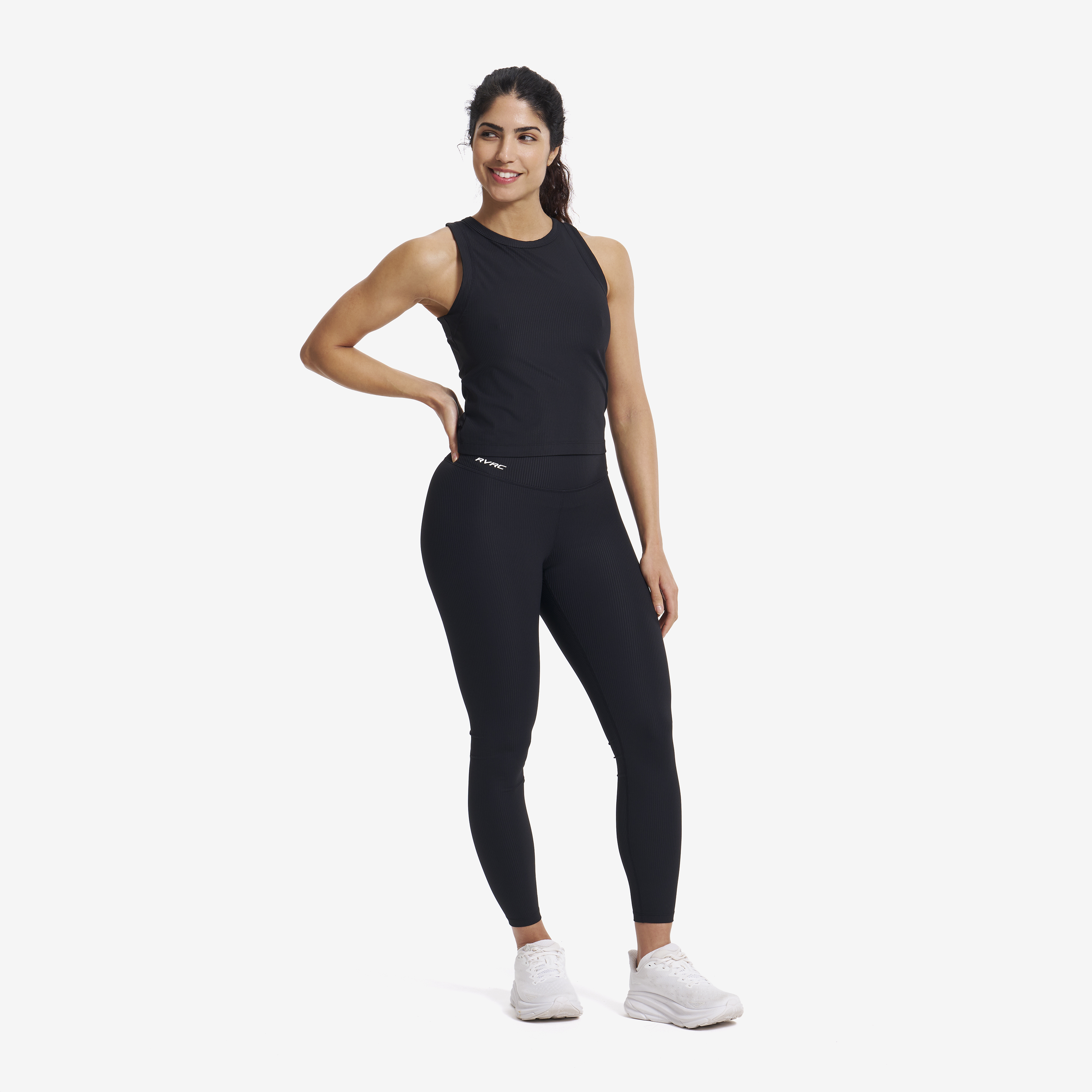 Lekkie legginsy z wysokim stanem wykonane z wyjątkowo rozciągliwego, lekko prążkowanego materiału.