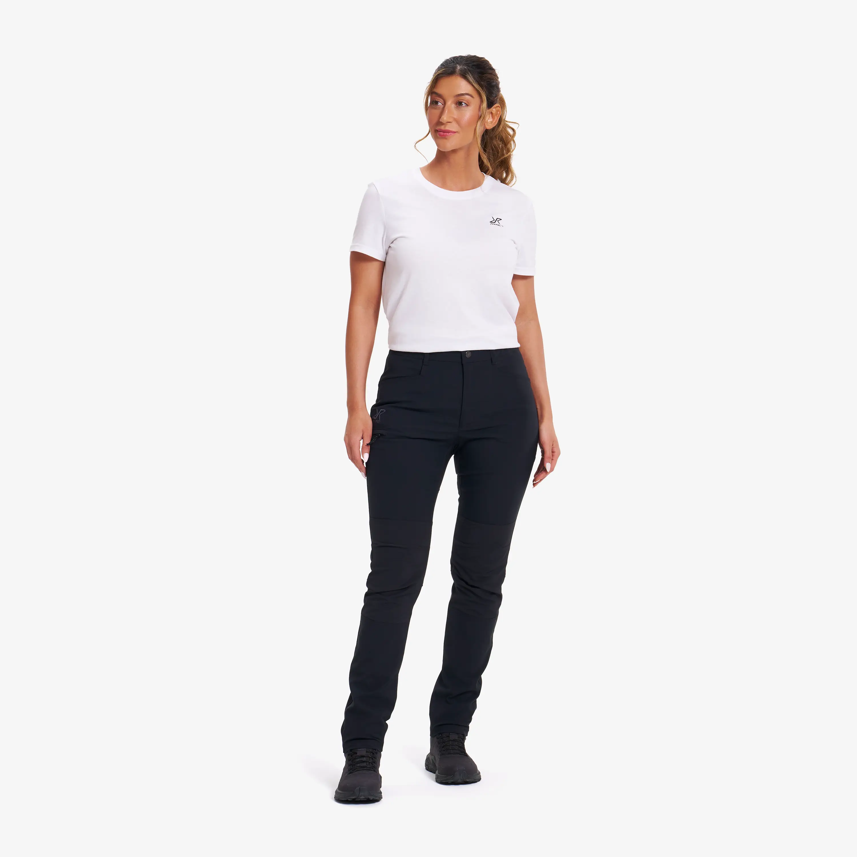 Twig High-Waist Pants łączą elegancki, minimalistyczny design z praktycznością wymaganą na co dzień. Wysoka, elastyczna talia zapewnia wygodne dopasowanie, a wytrzymały materiał na udach i w dolnej części zwiększa trwałość spodni, nawet gdy są noszone przez cały rok. Elastyczne panele na kolanach i pośladkach zapewniają przyjemną elastyczność podczas spacerów, wędrówek lub innych aktywności na świeżym powietrzu. Dzięki trzem praktycznym kieszeniom i prostemu, dopasowanemu krojowi spodnie te są idealne na lekkie, krótkie wędrówki i codzienne wyjścia — niezawodne i gotowe na wszystko, co przyniesie dzień.